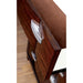 The perfect collection to declutter and organize while maintaining style. This brown cherry finished chest showcases unique geometric woodwork for a modern charm. Silver trim accents and matching silver drawer pulls add a faint glamorous touch to brighten up your room!