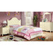 A camel-back design with vertical grooves gives charm to this set. The low-post bed shares the same design as the mirror, and like the bed, the rest of the case goods are also finished in cream. The suggested metal bed frame works perfectly with the bed in supporting the mattress.