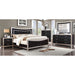 Contrast defines this elegant dresser: flowing lines are set against straight edges, while the smooth silver finish clashes beautifully with the textured, crocodile leatherette front panels. Legs curve gently outward away from the straight frame, while antique-looking handles exhibit curves as well.