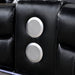 Take your living space to another level with this cozy and futuristic ensemble. Plush backs and arms are adorned with diamond stitching on smooth leatherette. Underneath each arm is extra storage. The main draw here is the LED lights on bottom edge of this loveseat--lighting that lifts the mood from unexpected to exotic. It is equipped with a center console with storage, cup holders, and Bluetooth audio speakers, which if used smartly, can definitely change the evening's mood.