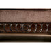 Ornately carved wood details highlight this unique mocha fabric-upholstered solid wood sofa that has been proudly made in the U.S.A. As an American product, you can count on its durabilty and longevity.